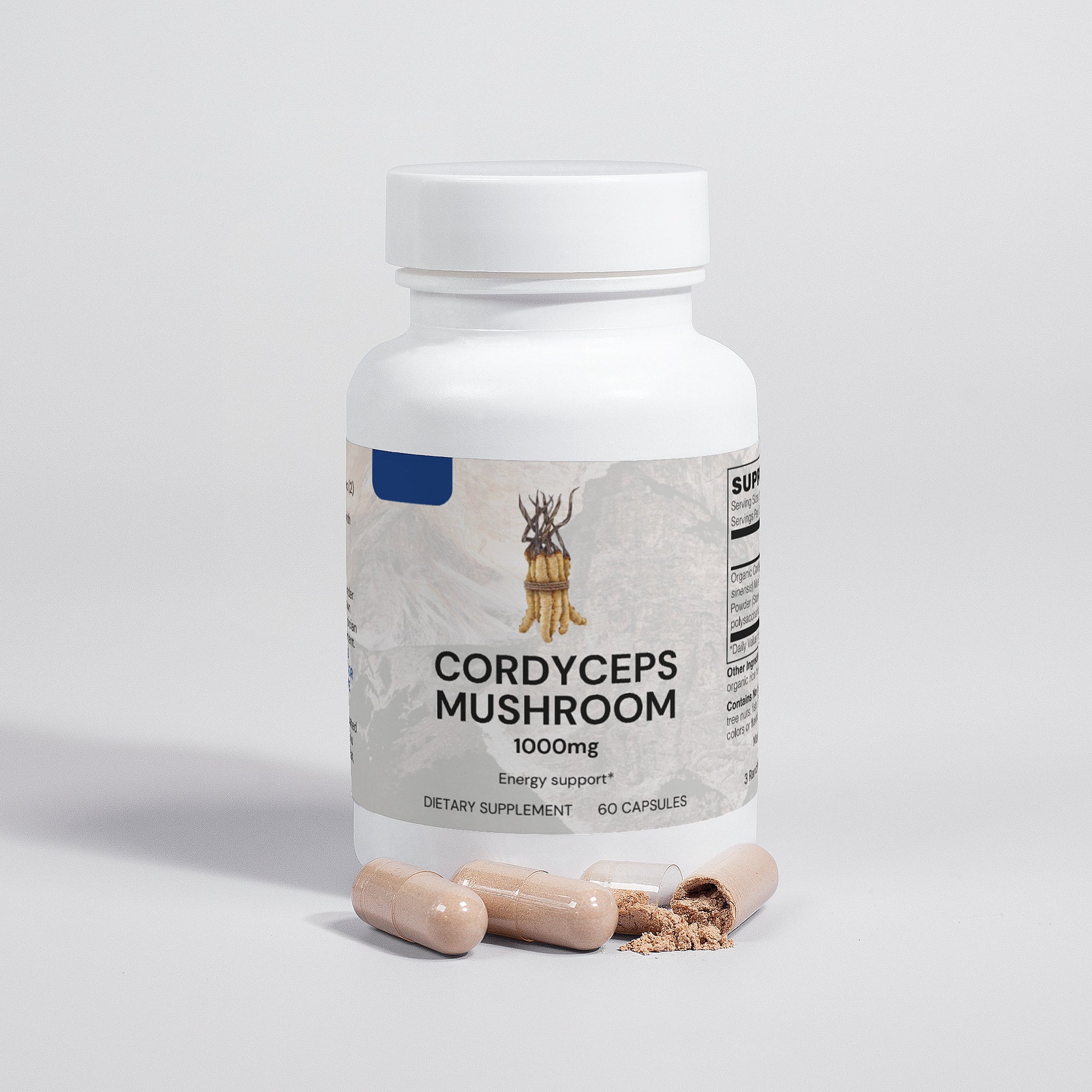 Ingredients: Organic Cordyceps (Cordyceps Sinensis), Mushroom Mycelium Powder (Standardized to 40% polysaccharides [400mg]), Organic capsule (pullulan, water), organic rice hull.