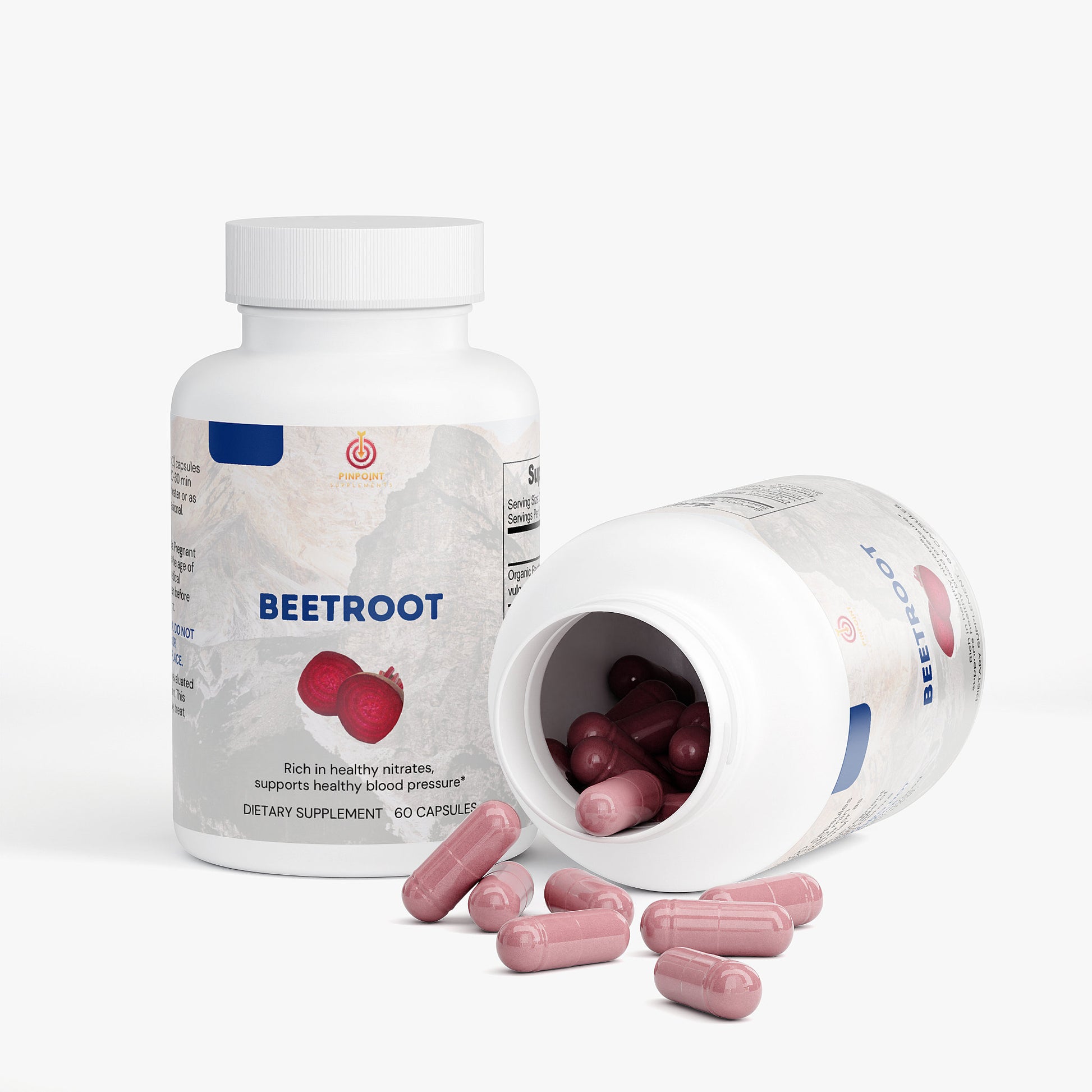 Ingredients: Organic Beetroot Powder (beta vulgaris), Cellulose (Vegetable Capsule), Microcrystalline Cellulose, Magnesium Stearate.